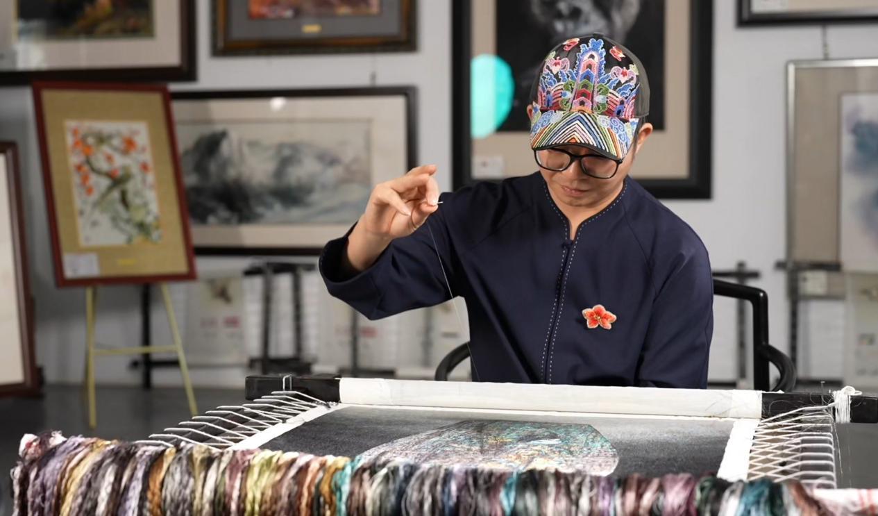 “没有部队练就的毅力,我可能早放弃了。”三年多边打工边学绣,他逐步从学徒成长为工艺美术师,并独创圈圈针法、工字针法等技法,获得业界认可。2013年以来,其作品屡获国家级、省级工艺美术大奖;2025年,三幅作品被中国工艺美术馆·中国非物质文化遗产馆收藏。
