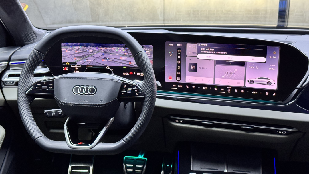 在作为奥迪“基本盘”的的机械结构层面,新车提供了前后五连杆底盘、FSD频率选择减震器、自适应空气悬架、quattro电动四驱系统等配置。