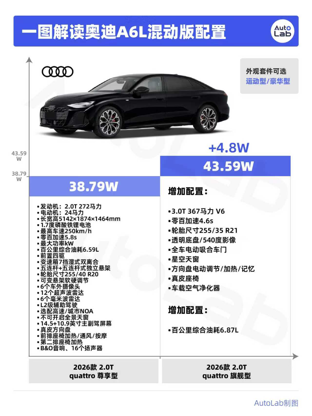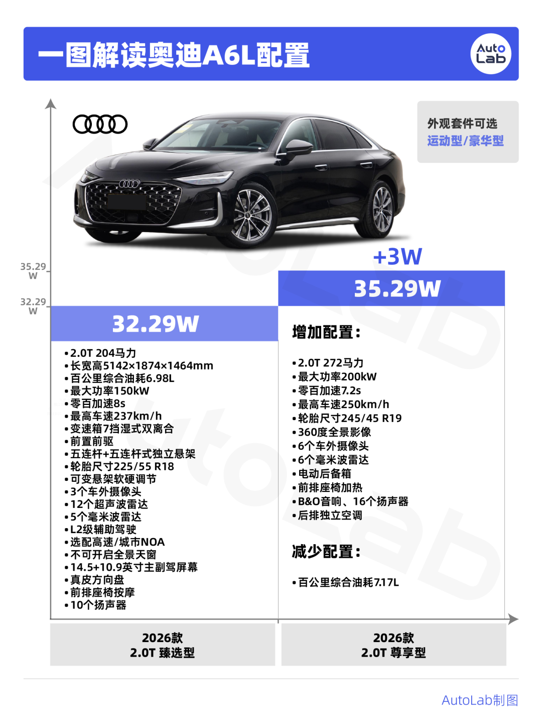 这次全新A6L总共推出了4款配置,售价分别为32.29万、35.29万、38.79万和43.59万元。